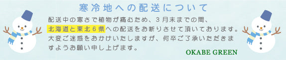 - 温度が高い時期は直射日光が葉に当たり葉やけを起こしてしまう可能性がございますので、遮光をし対策をして頂けると幸いです。