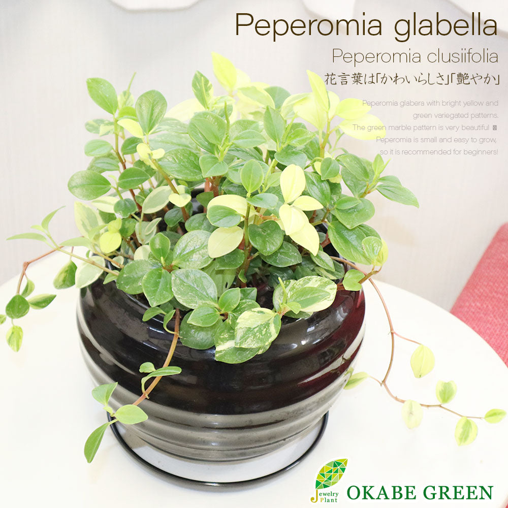 ペペロミア グラベラ 8号 黒丸陶器 ソーサー付
