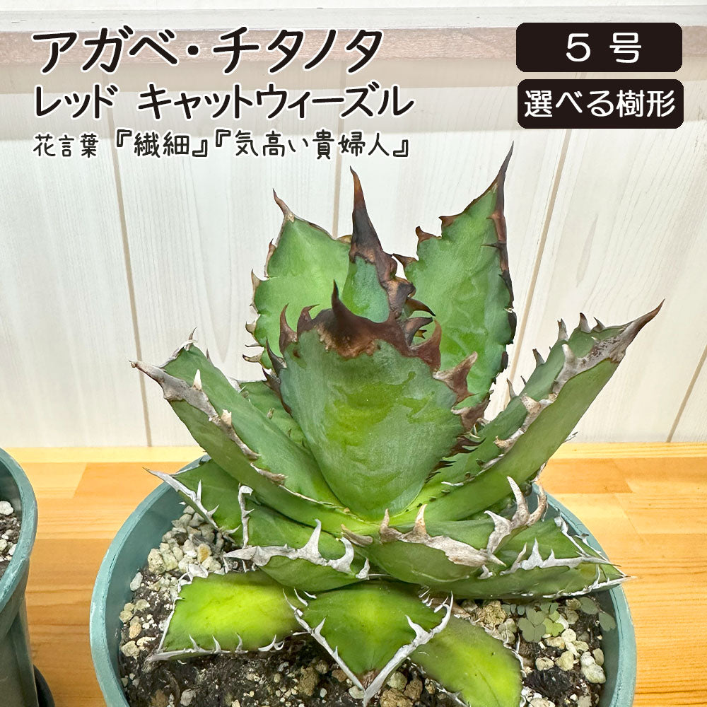 アガベ チタノタ レッド キャットウィーズル 5号 【現品】 選べる樹形 緑プラスチック鉢