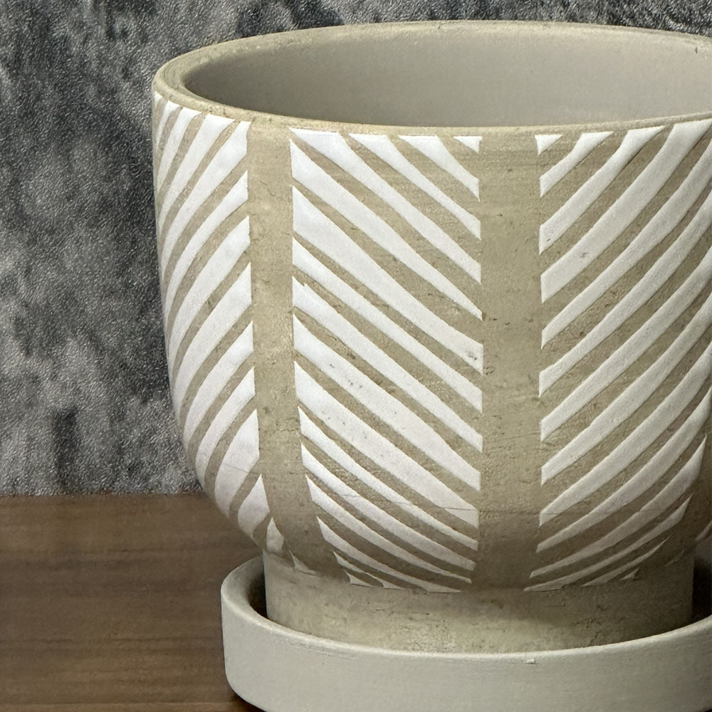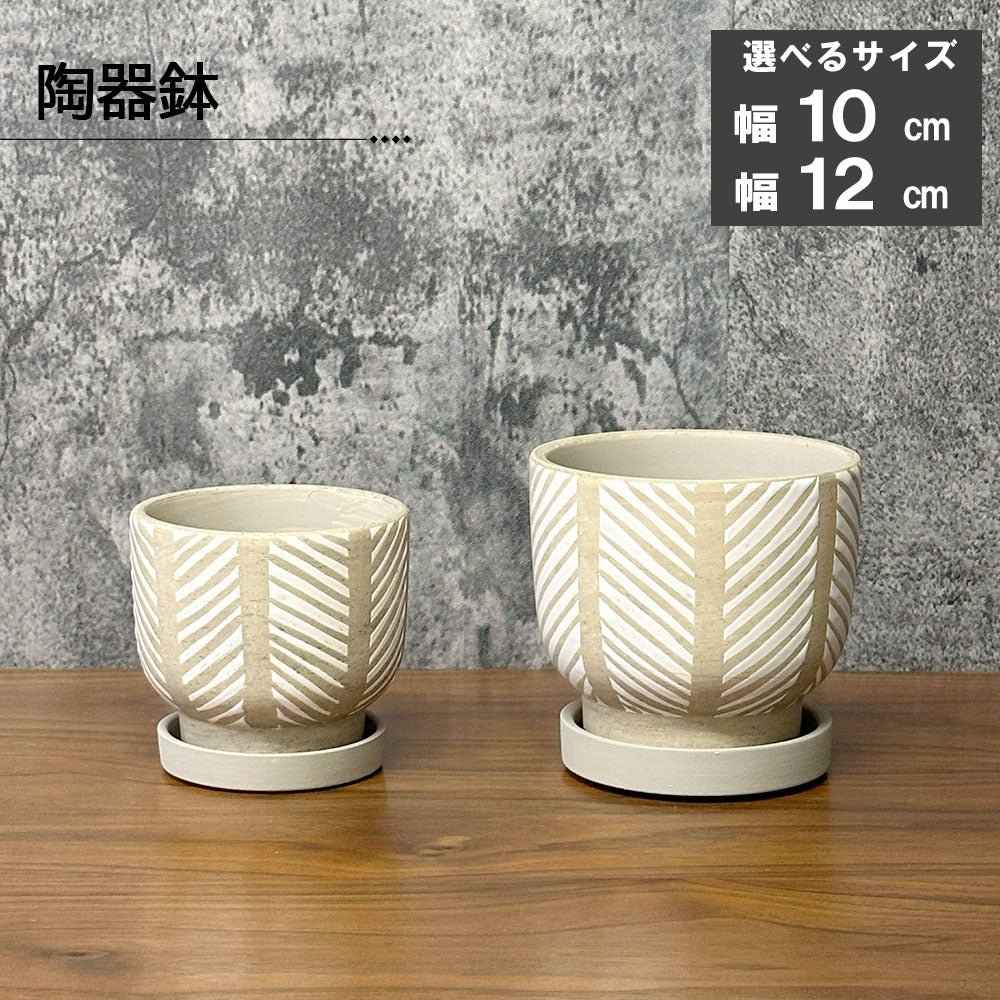 鉢 おしゃれ 陶器鉢 選べるサイズ 3.5号 4号 デザイン陶器 ソーサー付 ブラウン ホワイト