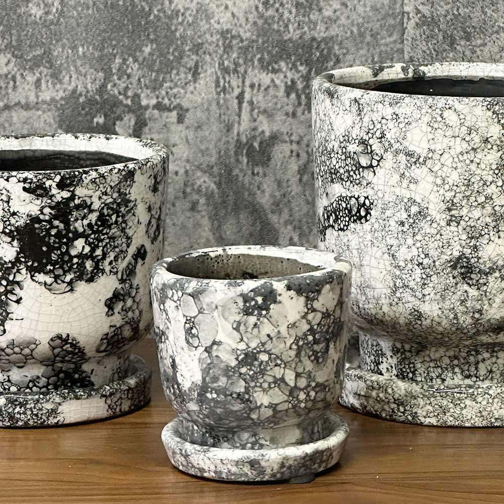 大きさ | 選べるサイズ 【3号】 カラー ブラック サイズ Ф9 x H8cm 口 径 Ф7.5cm その他 穴あり・皿付き 【4.5号】 カラー ブラック サイズ Ф13.5 x H12cm 口 径 Ф12cm その他 穴あり・皿付き 【5.5号】 カラー ブラック サイズ Ф16.5 x H15cm 口 径 Ф14.5cm その他 穴あり・皿付き |