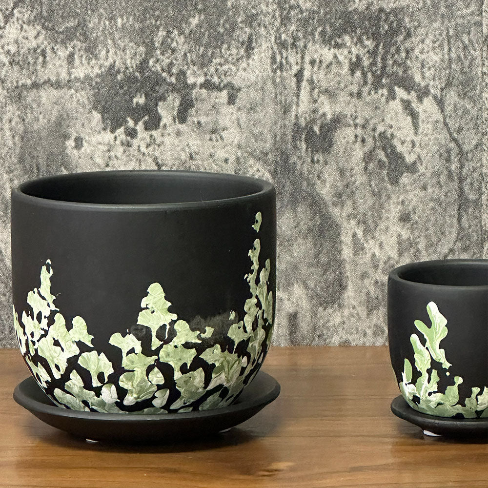 大きさ | 選べるサイズ 【小サイズ(2.5号)】 カラー ブラック&グリーンパターン サイズ Ф7 x H6cm 口径 Ф6cm その他 穴あり・皿付き 【大サイズ(4号)】 カラー ブラック&グリーンパターン サイズ Ф12 x H10cm 口径 Ф11cm その他 穴あり・皿付き |